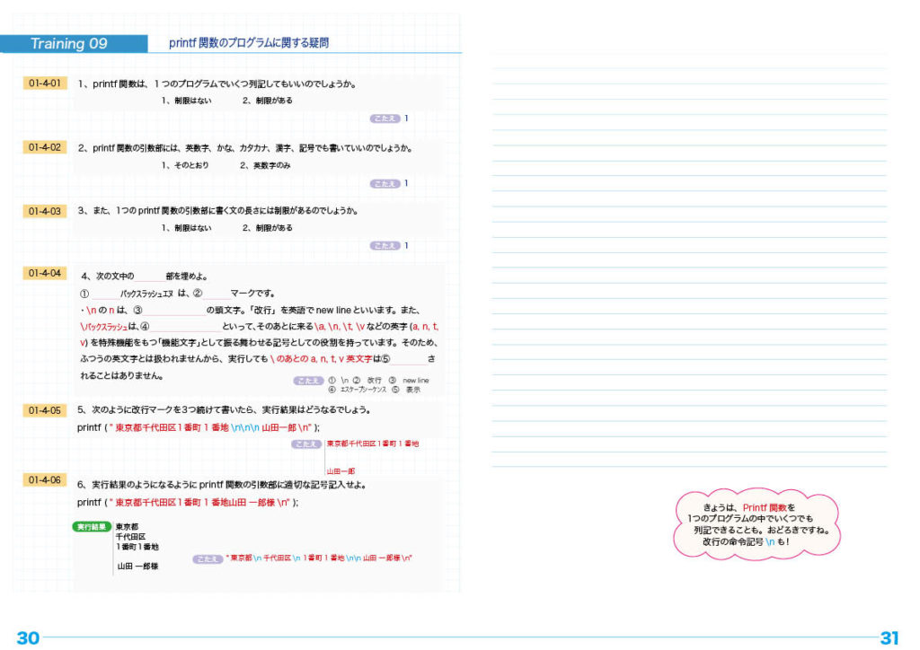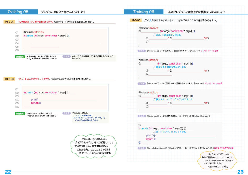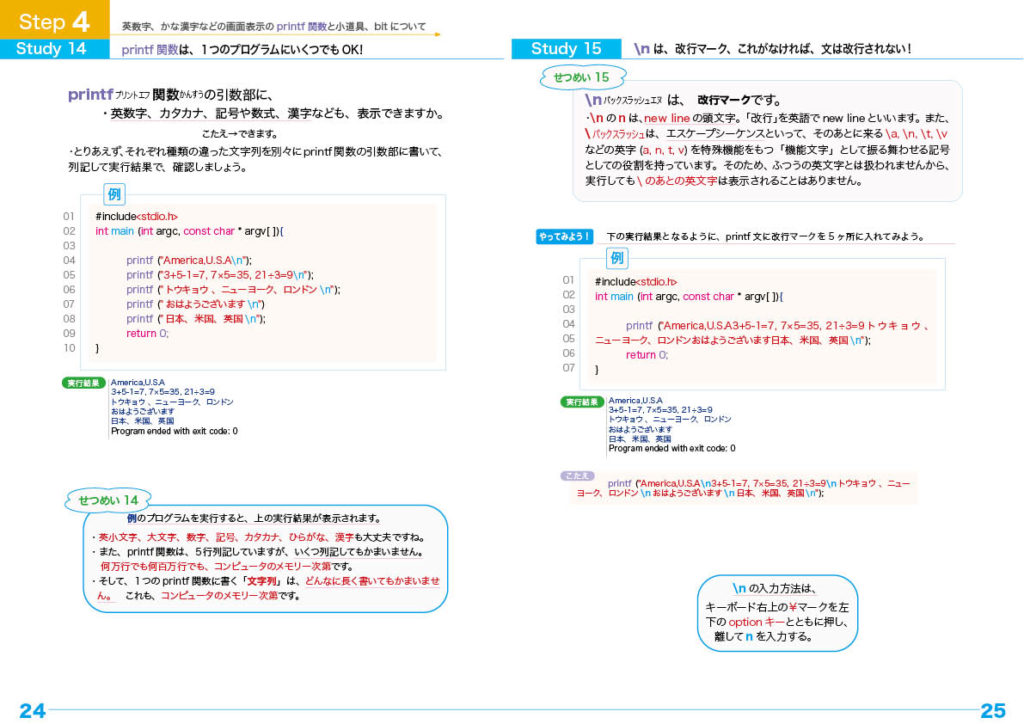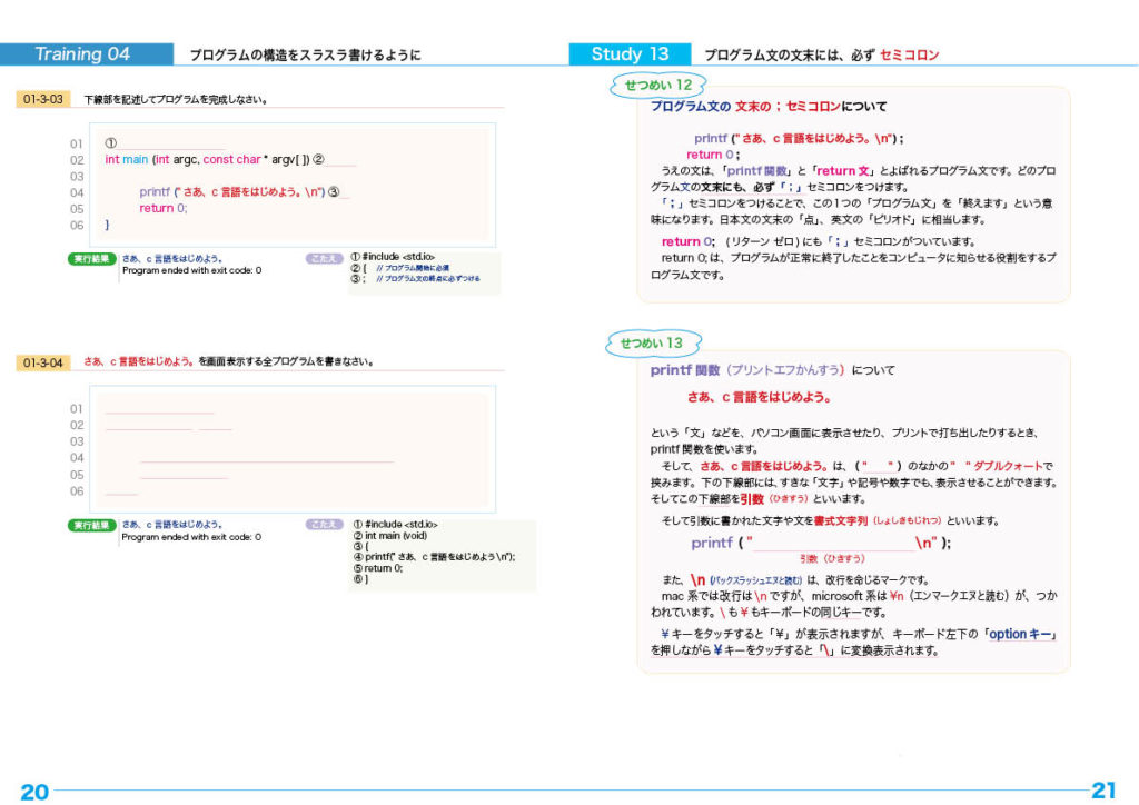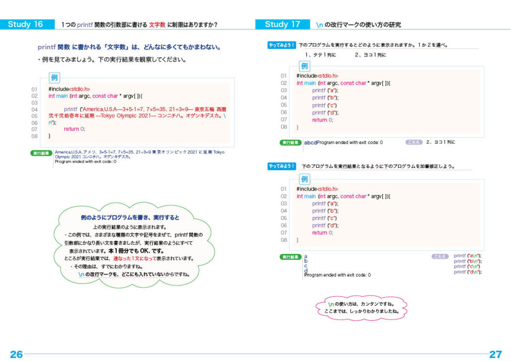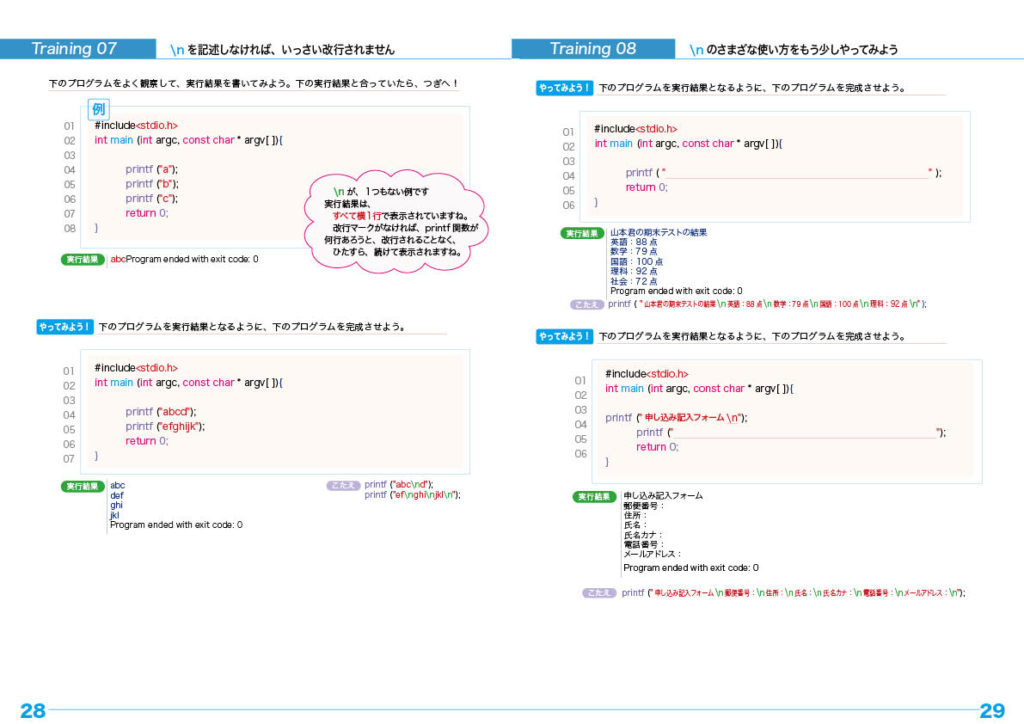 printf関数のプログラミング・トレーニングと文の改行のしかた